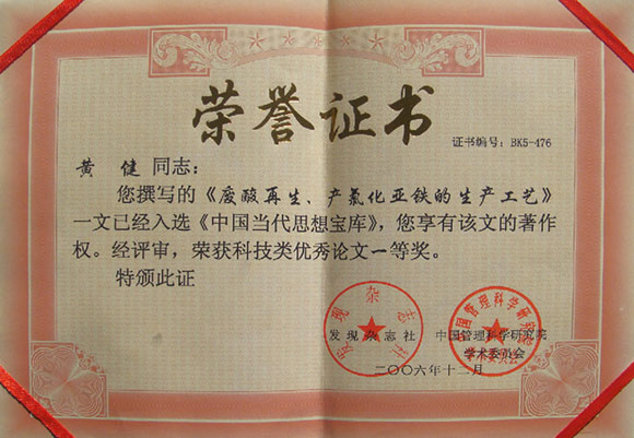 《廢酸再生、產(chǎn)氯化亞鐵的生產(chǎn)工藝》入選《中國(guó)當(dāng)代思想寶庫(kù)》