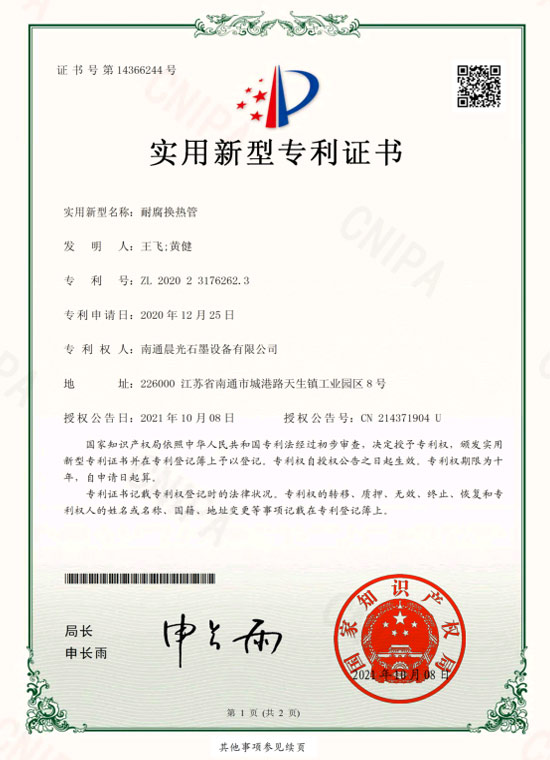 實(shí)用新型專利 :耐腐換熱管 專利號(hào):ZL 2020 2 3176262.3